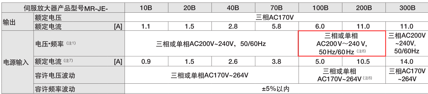 ①三菱MR-JE-100A(B),MRMR-JE-200A(B)供電電壓可以用單相220V,前提是實際負載率在75%以下