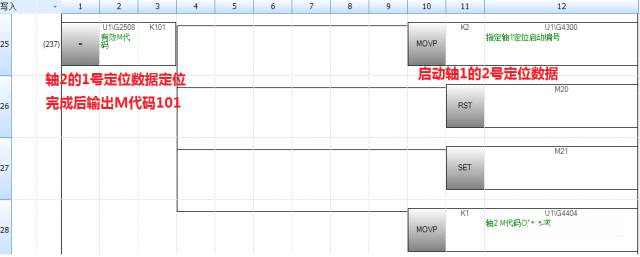 以上程序便可完成軸1定位完了之后切換軸2,軸2定位完之后切換軸1...及軸2的插補動作了。