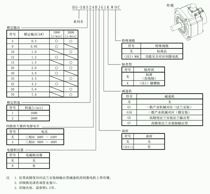 3. 帶減速機的情況,請參照外形尺寸圖。