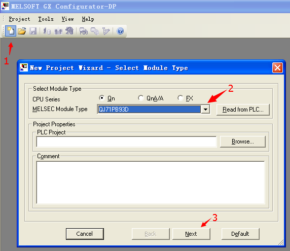 1、新建 2、選擇型號QJ71PB92V 3、下一步(如圖d)