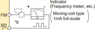 2.不帶-CHT的變頻器與之相應(yīng)的監(jiān)視輸出端子FM脈沖輸出(圖二)