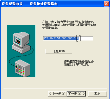 選擇UDP通訊協(xié)議時(shí)三處紅色框之處都要注意,第一處同樣要選確認(rèn),理由同上,第二處和第三處沒有確定的值,一般建議最好使用700以后的端口。這里要強(qiáng)調(diào)的是當(dāng)我們選擇設(shè)備時(shí),設(shè)置設(shè)備地址時(shí)地址中的端口值要與此圖一致,如下圖