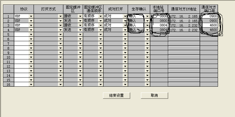 上圖是選擇TCP通訊協(xié)議時(shí)的情況,圖中鉛筆圈定的兩個(gè)地方要注意,第一處一定要選“有順序”否則會(huì)引起通訊失敗,第二處一定要選 “確認(rèn)”,這樣才能與上一圖中的設(shè)置相對(duì)應(yīng),否則會(huì)導(dǎo)致通訊恢復(fù)需要很長時(shí)間。