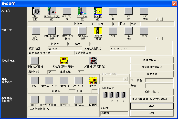 可按照實(shí)際情況選擇上圖中的“網(wǎng)絡(luò)類型”,“起始I/O號(hào)”,“網(wǎng)絡(luò)號(hào)”,“組號(hào)”,“站號(hào)”,并選擇對(duì)應(yīng)“模式”。