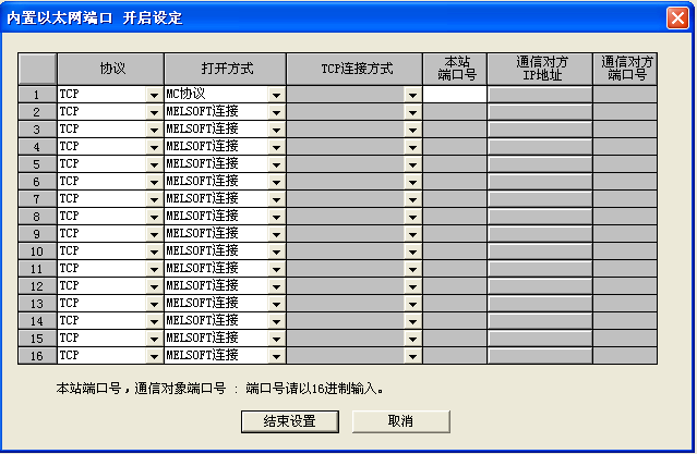 PLCport為PLC指定的端口號(hào),(0-FFFF)