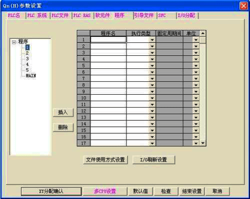2、在彈出的“CPU參數設置”窗口中,點擊“程序”標簽,然后在左邊的程序列表中單擊選定新添加的程序項目,然后單擊“插入”,最后再為該程序項目指定“執行類型”。