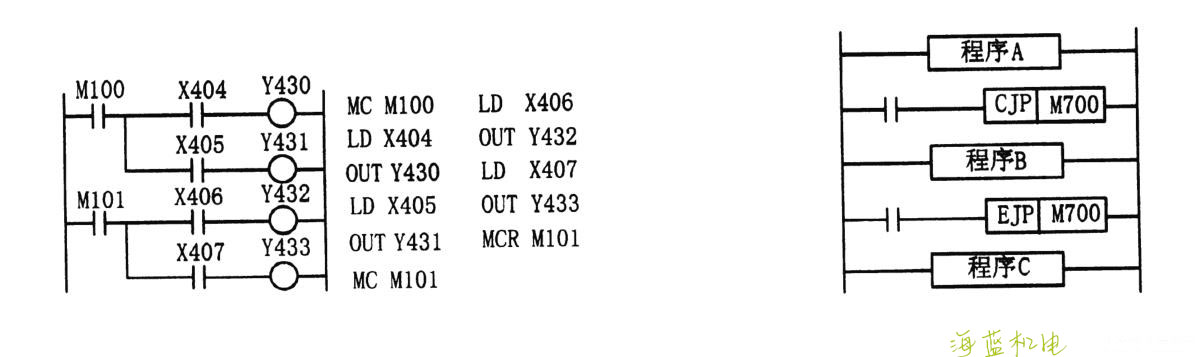電路結(jié)束時(shí)不必使用復(fù)位指令 M RC ,因?yàn)閳?zhí)行指令 MC 后,原公共母線會(huì)自動(dòng)恢復(fù)。到